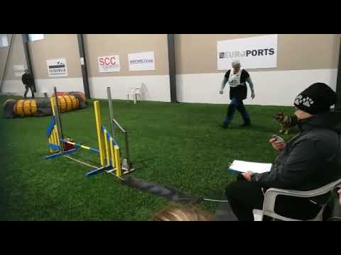 Aloitettiin hyppärillä. Tutustumisessa oli sellainen tunne, että ei oo meidän rata ollenkaan. Ansaputkia oli useampi, mutta yritin ajatella, että saan Hermannin ohjattua oikeisiin paikkoihin. Lähdettiin alkupäässä, niin selvisi nopeasti, että tällaisella einiinmeidäntuntuisella- radallakin osataan toimia, sillä päästiin nollalla maaliin :) Ennen keppejä oli lipsahtamassa putkeen, mutta karjumalla vältettiin virhe :P Sijoitus oli 3.